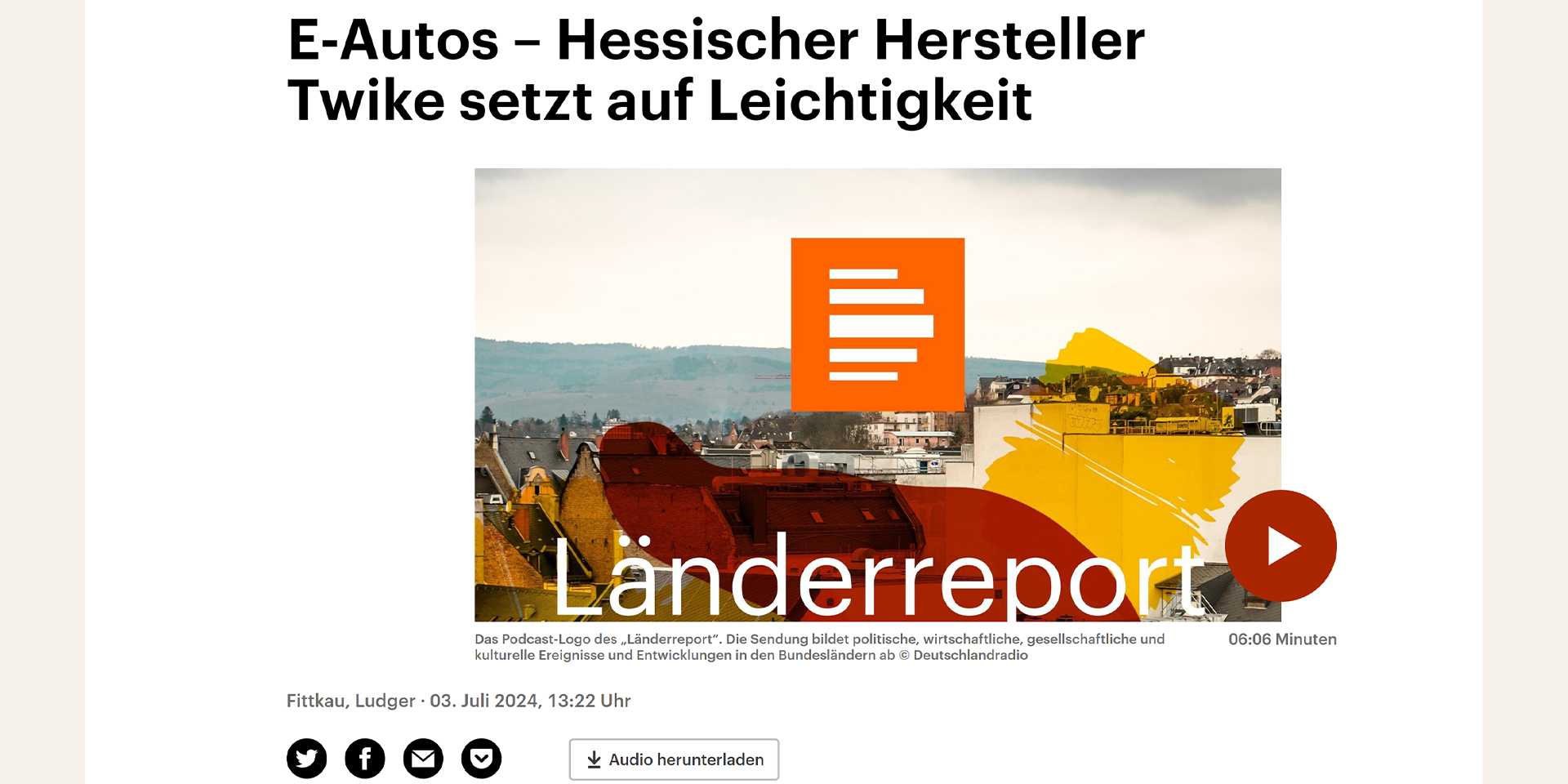 Ludger Fittkau, Landeskorrespondent Hessen, hat uns besucht und konnte mit Martin Möscheid im TWIKE 3 und dem Fahrerprobungsträger des TWIKE 5 Probe fahren.
