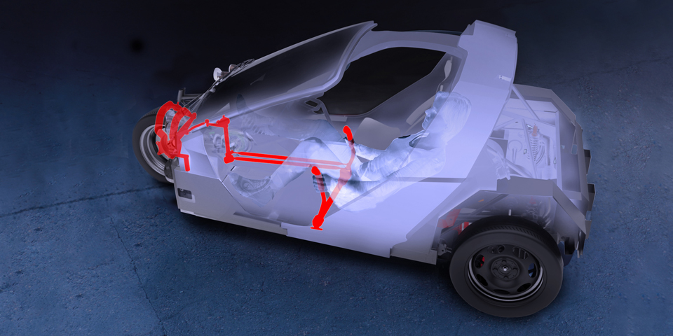 Ein Tritt in die Pedalen, die auf der Fahrerseite serienmäßig vorhanden sind und für die Beifahrerseite optional bestellt werden können, trägt nicht nur zur eigenen Fitness bei. Die durch reine Muskelkraft erzeugte Energie lädt auch noch den Akku. Apropos: Mit Akku soll das Elektro-Dreirad 500 Kilogramm auf die Waage bringen (ohne Akku: 380 kg). Als Zuladung sind dann noch einmal 250 Kilo extra erlaubt. In das Gepäckfach im Heck passen 300 Liter und es soll sogar Platz für ein paar Ski geben. Ein Lenkrad gibt es im TWIKE 5 nicht. Hier wird mit Hilfe der neuen „Sidesticks“ links und rechts vom Fahrer gelenkt.