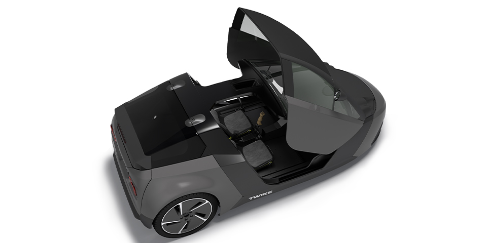 Das TWIKE – ein „Kofferwort“ aus Twin und Bike – geht zurück auf Studierende der ETH Zürich, die 1986 einen ersten Prototypen des geschlossenen Liegerads entwickelten. Die Pedale sind bis heute an Bord. Während beim Vorgängermodell TWIKE 3 damit der Elektroantrieb mechanisch unterstützt wird, dient die Pedalkraft beim TWIKE 5 dazu, Strom für den E-Motor zu erzeugen.